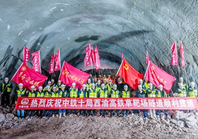 四川廣安:西渝高鐵華鎣段草靶場隧道貫通為新年獻禮