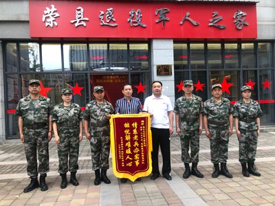 通過志愿服務活動的開展,不僅樹立了隊伍形象,展示了退役軍人風采,還聯姻了軍創企業的抱團發展。今年,成功將隊員龔文利所在的平創集團引進回榮縣,在榮縣經開區南區投資3億元建太空艙、鋼架房生產廠;成功將榮縣土陶創意園軍創藝術家劉勇大師的藝術酒陶與榮縣軍創企業“洞天仙液”聯姻,形成了強強發展的良好勢頭;有效引導網紅隊員何建東長期堅持義務理發500多人次、免費送生活物品到困難退役軍人家100多人次、義務直播帶貨幫助群眾銷售農特產品近100萬元……