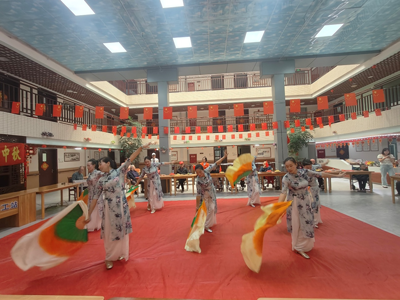與此同時,激勵集中養老的老年人踴躍參與活動。76歲的老人段思恭獨唱《十五的月亮》;73歲的退休教師李國秀詩朗誦《一壺老酒》,這充分體現了“人人參與、人人共享”的文化氛圍,以藝術為載體傳遞家國情懷,營造月圓人圓的節日氛圍。整個演出整整兩小時,在激情昂揚的歌舞《我愛我的祖國》節目中結束,全體“五老”和青年文藝愛好者與104歲的退休教師羅德盈合影留念,讓大家激發對偉大母親的赤子之心——祝我們偉大的祖國繁榮昌盛,國泰民安!(李正銀)