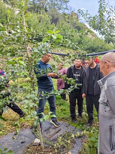 培訓現場,沒有講臺課桌,果樹下就是課堂。張躍勛將四十余年的實踐經驗,毫無保留地教授給了當地村民,這種“點對點”診斷、“一對一”解惑的互動方式,讓在場的果農大呼“解渴”。果農們紛紛表示,張專家講的都是“干貨”,聽得懂、學得會、用得上,明年果樹收入有望翻番。