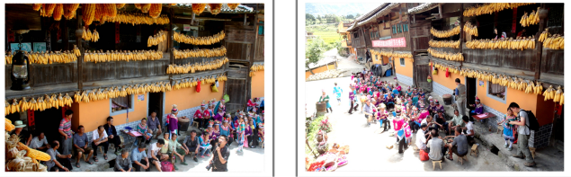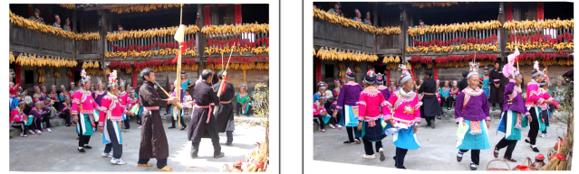閣樓上的苗家姑娘們可能是望眼欲穿看著院壩的慶典