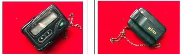 這是我使用過的那款摩托羅拉數字尋呼機,正面(左圖)是微型數字顯示屏,背面是塑料夾方便夾在腰帶上。