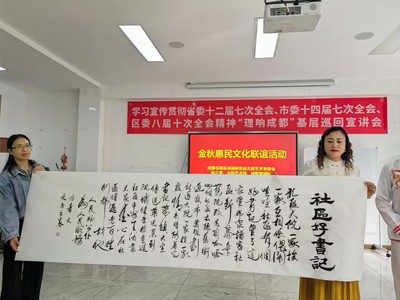 2025年10月13日,成都毛澤東詩詞研究會天府藝術專委會在西南街社區舉行了“金秋惠民文化聯誼”活動。表演了“多民族唱紅歌”,詩朗誦《青春中國》和原創歌曲《社區有個好書記》等等,并現場書寫歌詞,并現場親自贈予社區書記!學會始終堅持“六走進”,“三貼近”,以社區基層創作為基石,反映社區的變化,鄰里的和睦,市井的煙火,祖國的祥和,為地方文化和天府增加活力和魅力!惠民文化和群眾文藝蓬勃發展,人民幸福指數越來越高! (李宸瑩/文圖報道)